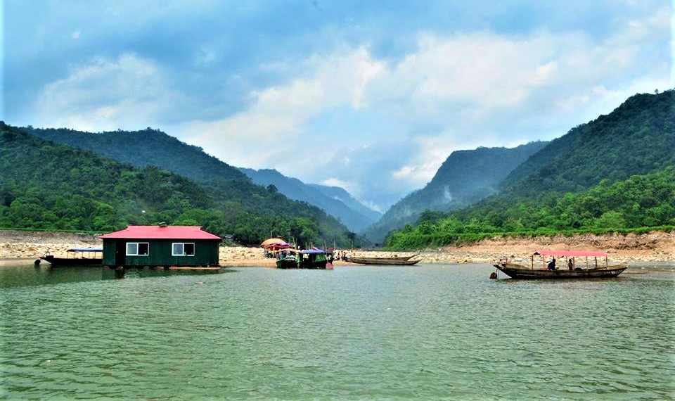 An alternative would be to go to Pangthumai first, and then hire a boat near Borhill Fall and ride along the branch of the Piyan which flows west towards Bisnakandi. The boat ride, which takes a little over an hour, on the sinuous river with lush green mountains on both sides is an unforgettable experience.